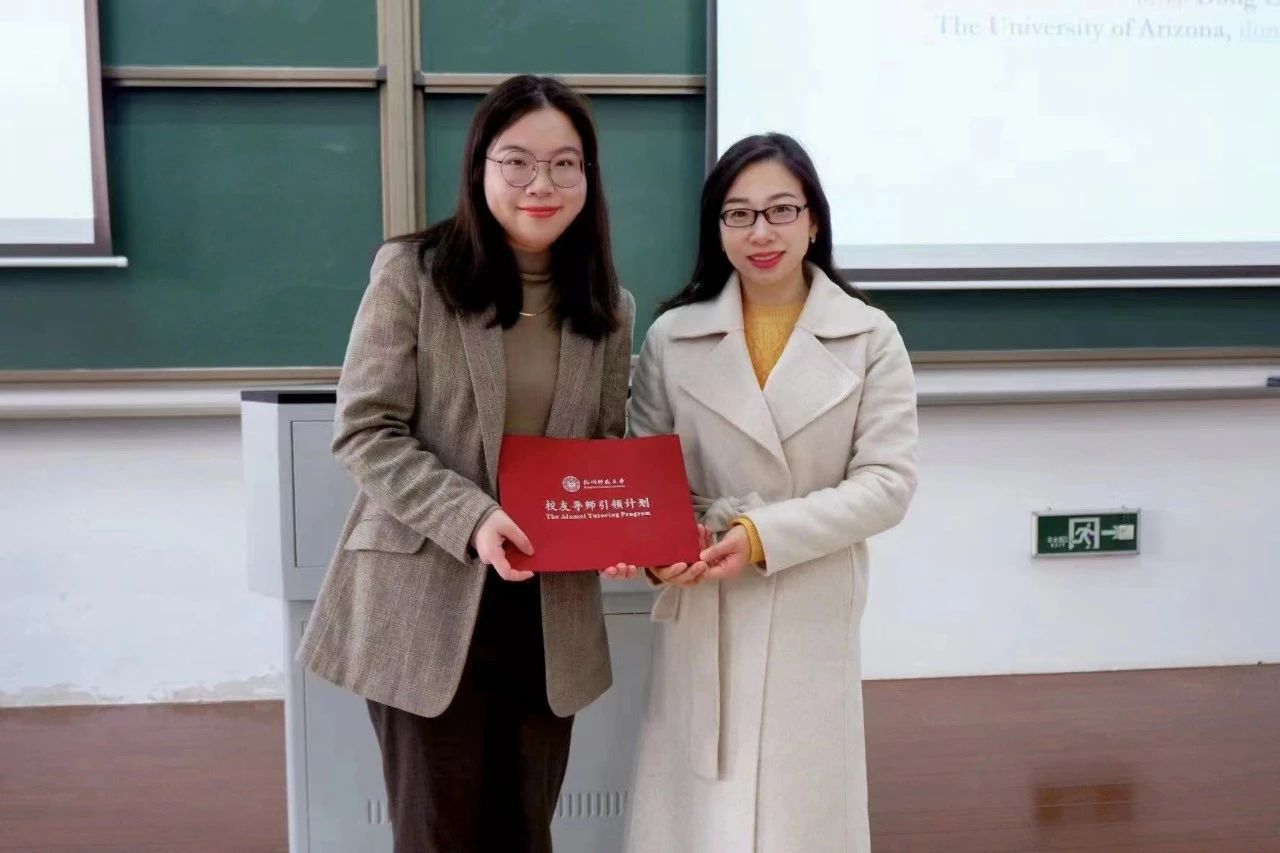 讲座开始前,天英足球即时比分 党委副书记沈嫣为陈栋校友颁发了“校友导师引领计划”讲师团聘书。