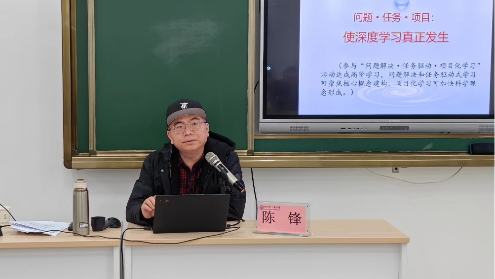 陈锋特级教师针对义务教育课程方案所倡导的素养导向、优化课程内容组织形式以及突出实践育人思想进行了《双新视域下的科学新教学》专题讲座。在“新课程方案、新课程标准”的双新背景下,教学主张中如何实现“新教学”是值得探讨的问题。陈老师认为,新教学必须是学生真实情境的深度学习。教师需要通过“问题解决、任务驱动、项目化学习”达成高阶学习,其中问题解决和任务驱动式学习可聚焦核心概念建构,而项目化学习可加快科学观念形成,这样才能使深度学习真正发生。这些思想都为学员们践行教学主张实践路径提供了思路。