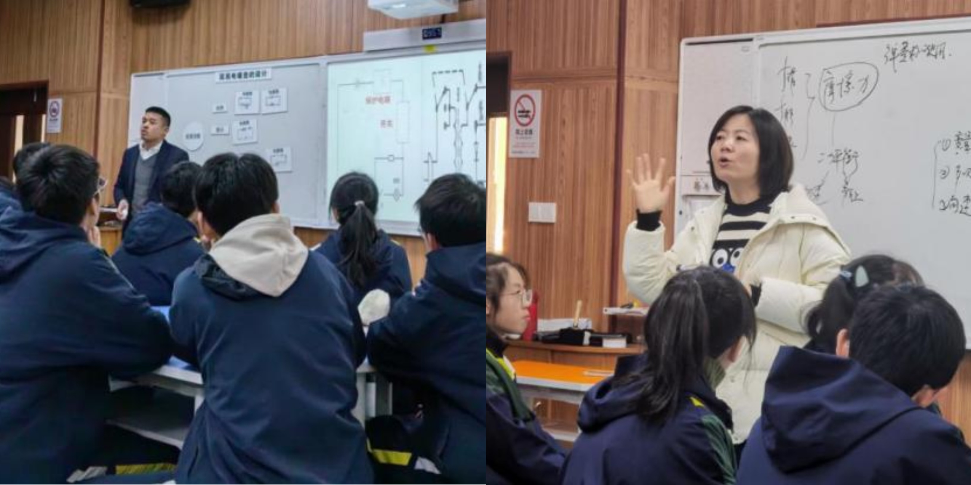 12月21日,我们来到杭州景苑中学继续学习。学习的第一节课是由杭州景苑中学副校长、浙派名师唐小明老师给大家上一节微项目化课堂教学《简易点热垫的设计》。唐老师从冬天桌面上使用的电暖垫引出今天的课堂,带领学生从设计简单电路着手,实现加热的功能,接着引导学习根据实际使用需求着手,逐步改进迭代,依次设计出添加指示灯、多档位控制等的电路图,在工程物化的过程中培养学生的知识运用迁移能力和问题解决能力。