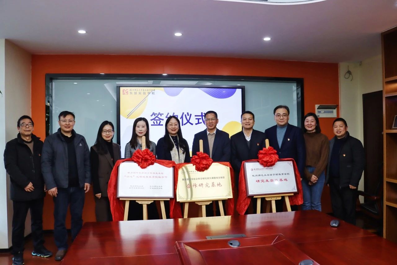 2023年12月27日,学院党委书记蒋璐敏、副院长赵立,心理学系杨群、王道阳、党茜茜等一行赴杭州师范大学东城实验学校东昌校区开展“助力四叶草和润少年阳光成长——“润心”心理健康教育院校合作揭牌仪式暨东实心理健康教育工作研讨活动”。杭州市上城区教育局王世美副局长、杭州师范大学东城实验学校沈颖淼书记、童瞻校长、王龙副校长、沈忆来副校长、丁慧鸿副校长等领导、老师参加了仪式活动。