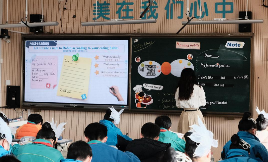 第二节课由杭州市求是教育集团吴思玥老师进行讲授,授课内容为五年级上册第三单元Read and write。在授课过程中,吴老师创设真实情境,真实连贯地实现学校食堂、家庭选餐和书写便签的层层深入。并且主线清晰,主题明确,以饮食习惯为主线,贯穿各个教学活动。在读中活动中,进行问题驱动,助力学生思考;在读后活动中,进行读写结合,发展学生思维。