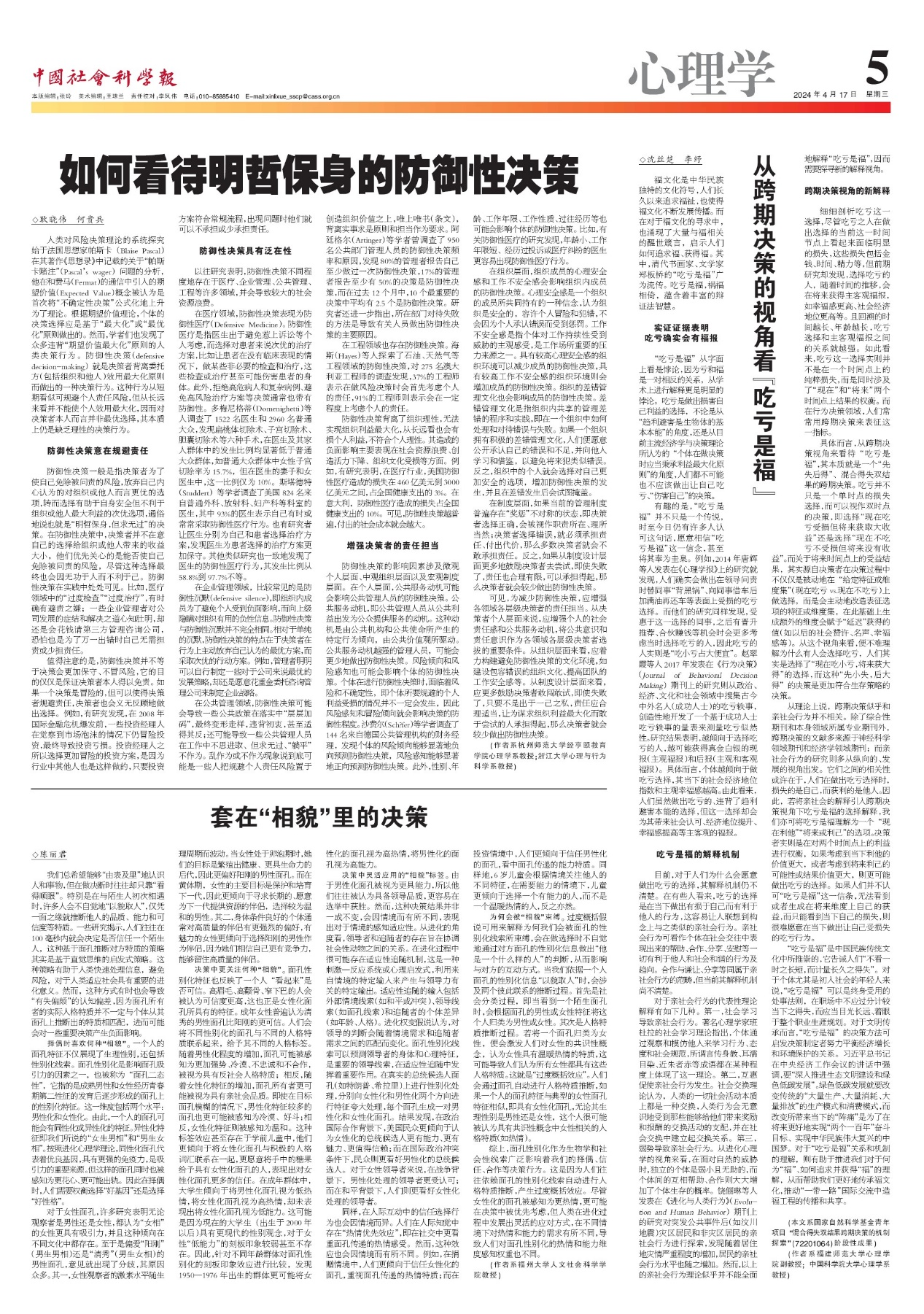 防御性决策具有泛在性