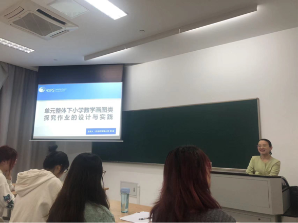 周老师首先从大单元、大概念的定义出发,介绍大单元、大概念的内涵及其之间的关系,帮助同学们梳理了单元整体教学的要点。通过单元整体教学四问,架构起大单元的教学设计框架。在”画数学”方面,周老师针对什么是“画数学”、为什么“画数学”、如何“画数学”这三个问题,做了深入系统地讲解,还向同学们分享了多个“画数学”教学案例,展示了如何通过直条图、线段图、复合线段图等“画数学”手段将抽象数学知识转化为具体直观、学生易懂的学习内容,体现出“数学画力”对学生几何直观等数学核心素养发展的独特价值。