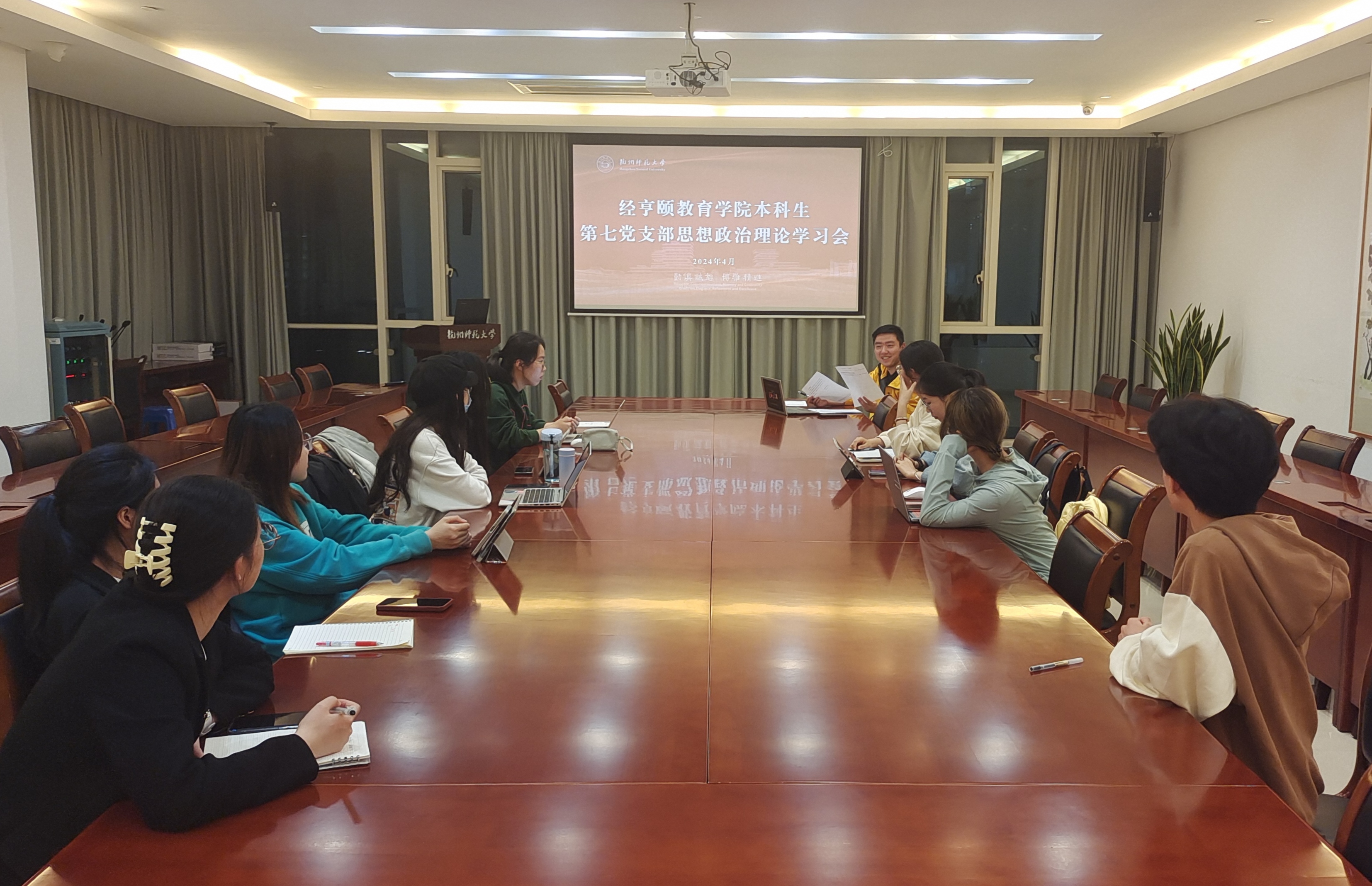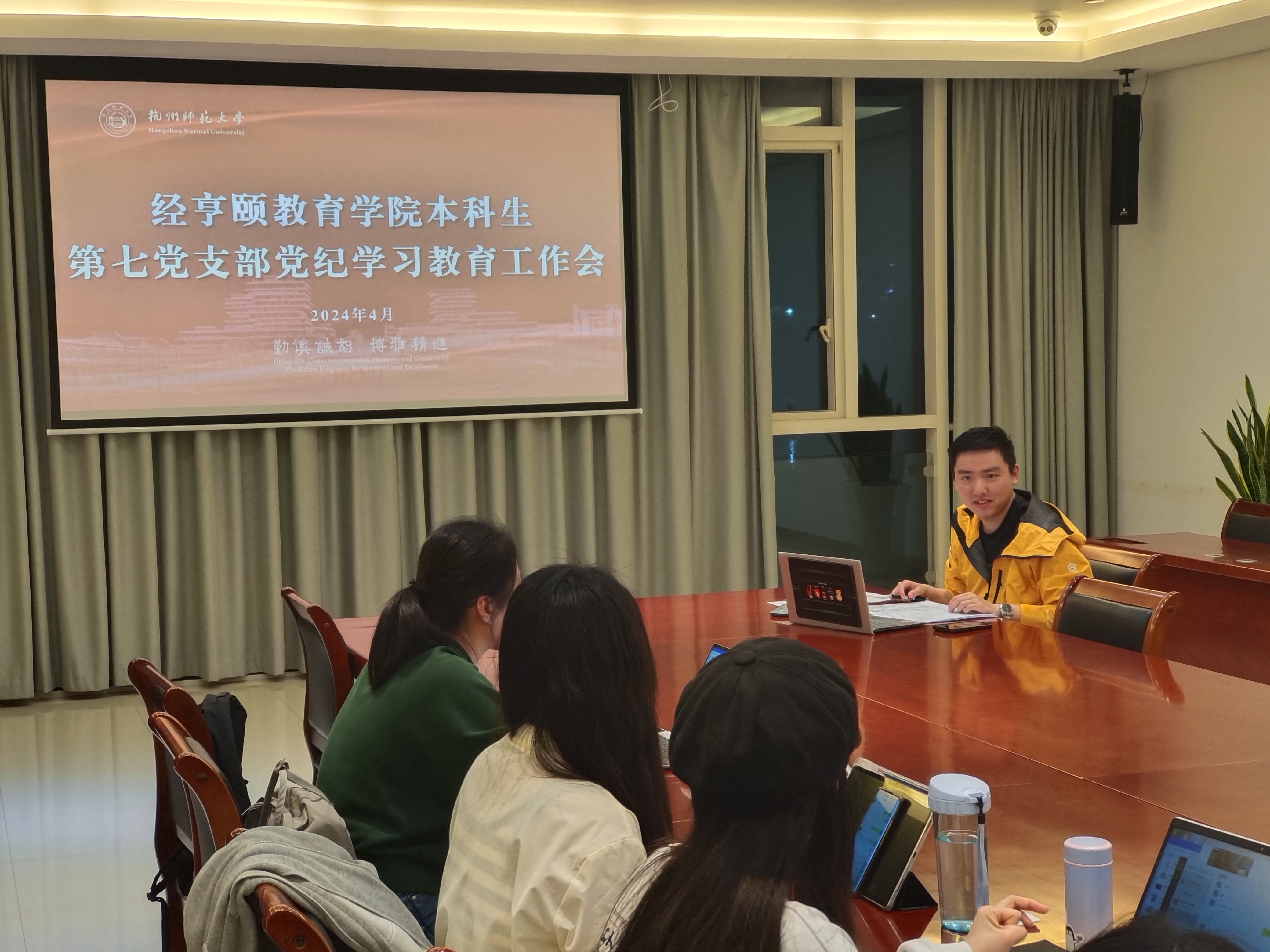 2024年4月21日晚,本科生第七党支部在行政楼212会议室召开了党纪学习教育动员及第一次学习会,会议由党支部书记黄哲浩主持。