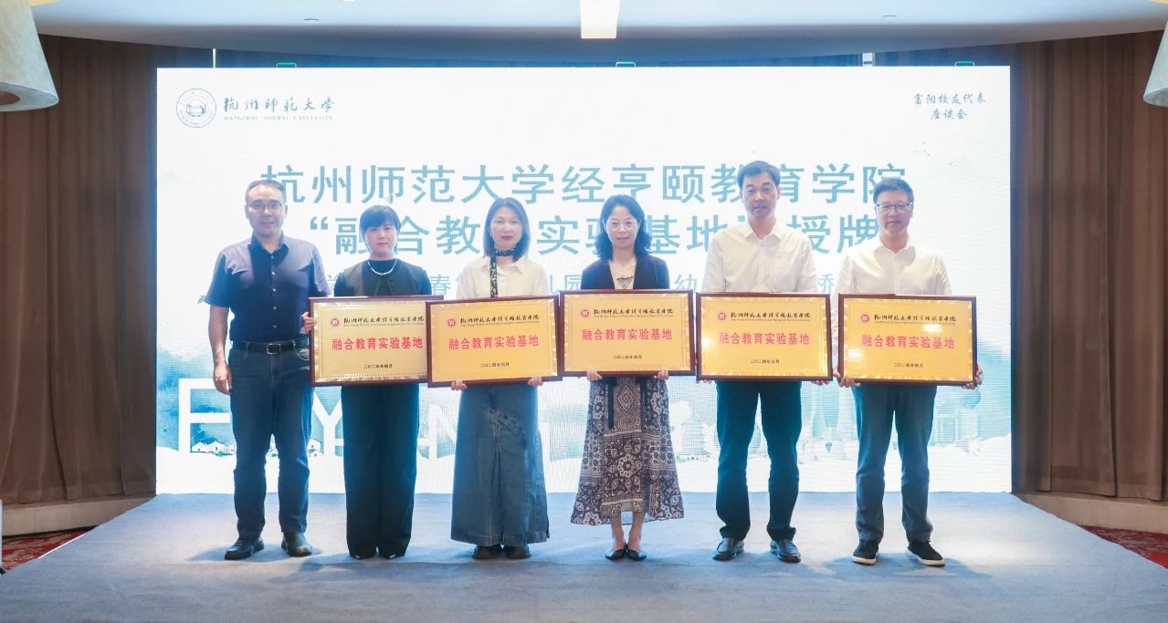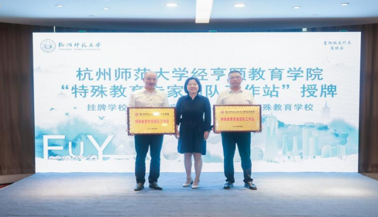 会上,为深化区校合作,共同推动富阳特殊教育的高质量发展,天英足球即时比分 分别在富阳区春江中心小学、富阳区东吴小学、富阳区富春第三幼儿园、富阳区东洲街道中心幼儿园、富阳区灵桥镇中心幼儿园等五所校园设立融合教育实验基地,在浙江省盲人学校、富阳区特殊教育学校设立特殊教育专家团队工作站。天英足球即时比分 副院长蒋永贵、特殊教育专业负责人马伟娜分别为七所学校授牌。