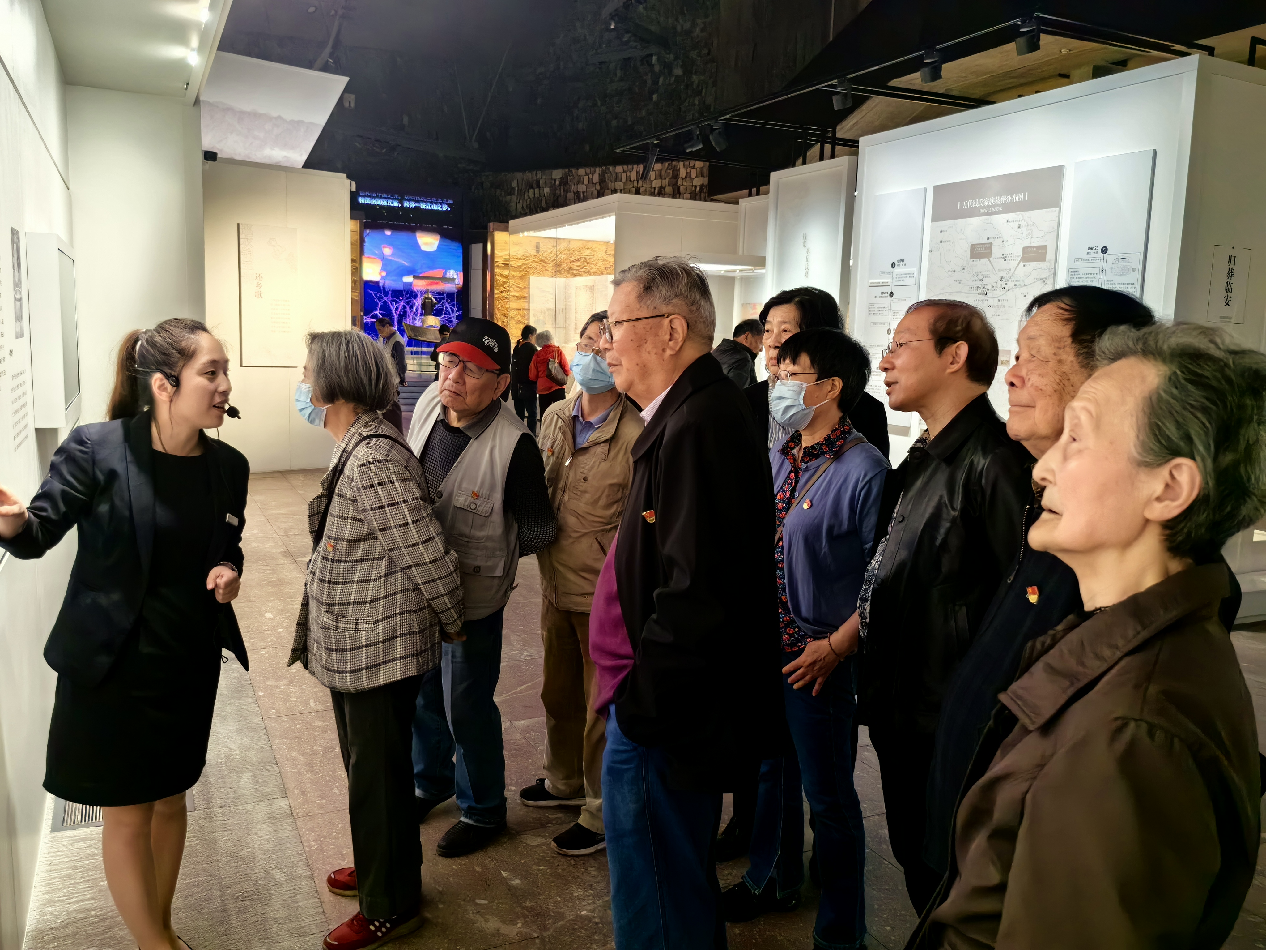 随后大家来到了临安博物馆。通过工作人员的现场讲解,辅以大量文物、图片、场景复原等丰富的展陈手段,退休支部党员们了解到了从远古到明清时期与临安历史相关的青铜器、瓷器、玉器、金银器等,领略了不同历史时期临安的文化脉络。展览厅中大量展示了吴越时期的灿烂文物,如官款白瓷、国宝级越窑青瓷褐彩云纹熏炉等,大家纷纷赞叹吴越时期精湛工艺和卓越文化。临安博物馆也是“杭州市廉洁文化教育基地”,这次的参观也是一场追随吴越文化的光辉印记,传承吴越文化清廉基因的清廉之旅。大家深深感悟到吴越钱氏一族在战乱中守住东南一方的家国情怀,钱氏家训中“处事不可不决断,存心不可不宽厚”、“欲造优美之家庭,须立良好之规则”、“利在一身勿谋也,利在天下者必谋之”等关于个人、家庭、社会、国家的训诫,不仅激励着一代又一代的钱氏后人为国家贡献,也鞭策着每一位党员要立德行、重家风、爱国家。
