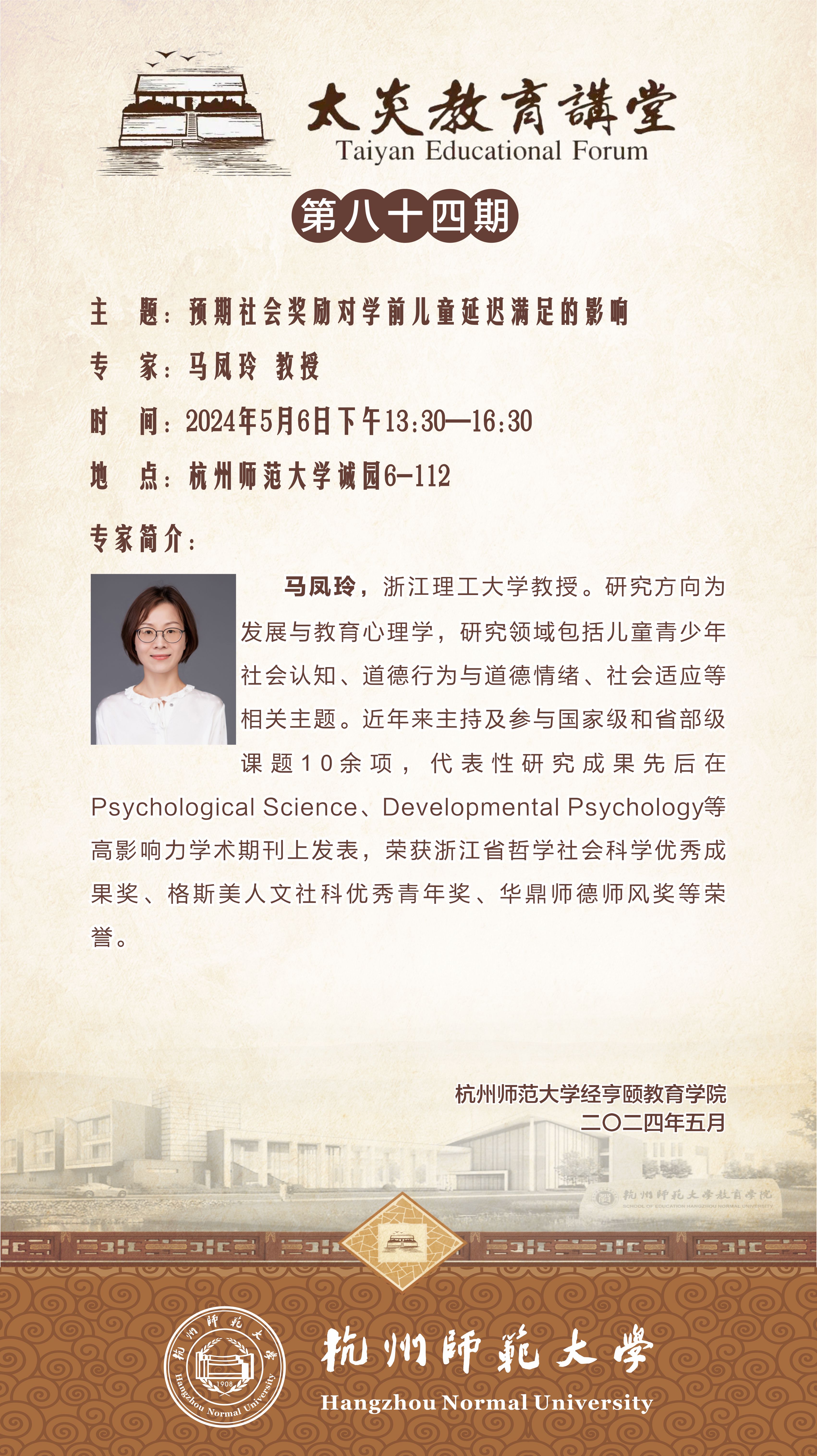 马凤玲,浙江理工大学教授。研究方向为发展与教育心理学,研究领域包括儿童青少年社会认知、道德行为与道德情绪、社会适应等相关主题。近年来主持及参与国家级和省部级课题10余项,代表性研究成果先后在Psychological Science、Developmental Psychology等高影响力学术期刊上发表,荣获浙江省哲学社会科学优秀成果奖、格斯美人文社科优秀青年奖、华鼎师德师风奖等荣誉。