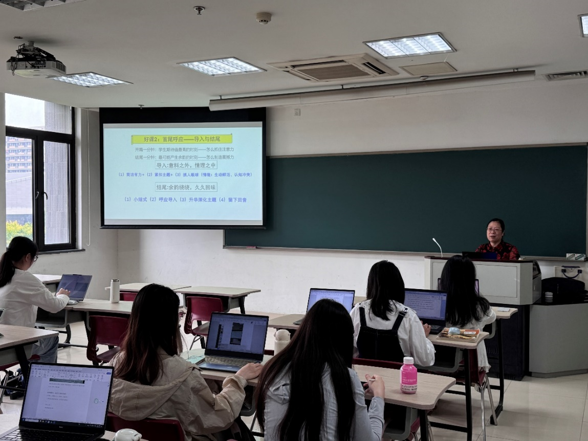最后,金老师与同学们进行了交流。针对同学们提出的如何增强自身的语言表达能力、如何设计一个子目的片段教学设计等问题,金老师进行了耐心的解答。通过金老师的此次分享,同学们深化了对一节好课的认识,对提高自身的教学技能与专业素养颇有帮助。