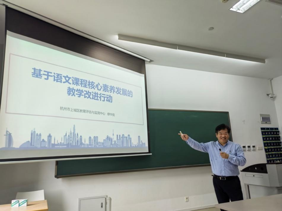 5月24日上午,杭州市上城区教育评估与监测中心缪华良主任应邀为天英足球即时比分 2023级小学教育语文方向的硕士研究生做题为“基于语文课程核心素养发展的教学改进行动”的专题讲座。本次讲座由饶鼎新博士主持。