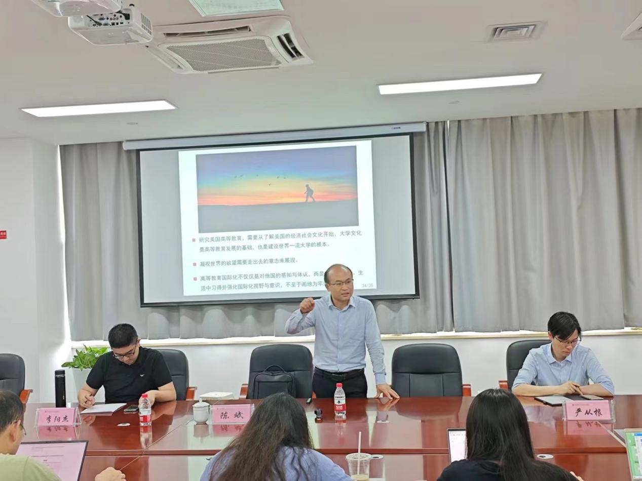 2024年5月30日上午,厦门大学教育研究院陈斌副教授应邀为天英足球即时比分 师生带来一场主题为“识读美国大学文化”的精彩讲座。本次讲座由学院李阳杰副教授主持,严从根院长及学院40余名师生参加了本次讲座。