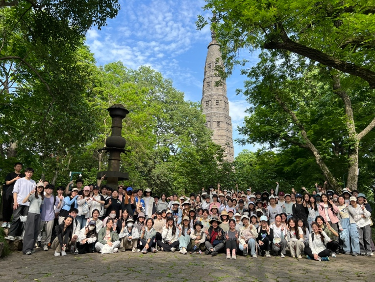来老师特意把集合地点定在宝石一弄的路口,因为这处围墙的沉积岩就是一份岩石学习的好素材;一路上山,植物郁郁葱葱,从竺麻到枫杨,再到银杏,沿途上植物的名称以及用途与功效,让同学们更直观了解课程内容;走过坚匏别墅,带领同学们感受历史和人文的气息;看到大佛寺遗址的石制构件,感受到历史遗存的厚重;高高耸立的保俶塔,不仅是宝石山的标志,更是杭州的历史文化象征。在川正洞前,“川正洞是由巨大的岩石堆叠而成,展现了大自然的鬼斧神工。洞内的岩石属于岩浆岩,经过长期的风化和侵蚀,形成了独特的洞穴景观,是一个真正的自然艺术品。”来老师一路走一路给同学们介绍自然和人文历史的相关内容。最终到达的蛤蟆峰,让大家直观感受到火山喷发岩的形态,更让大家将西湖美景尽收眼底。下山时从葛岭经抱朴道院,在波光粼粼秀美婀娜的西湖边,充满探索的“自然”课程在同学们的意犹未尽中结束了。