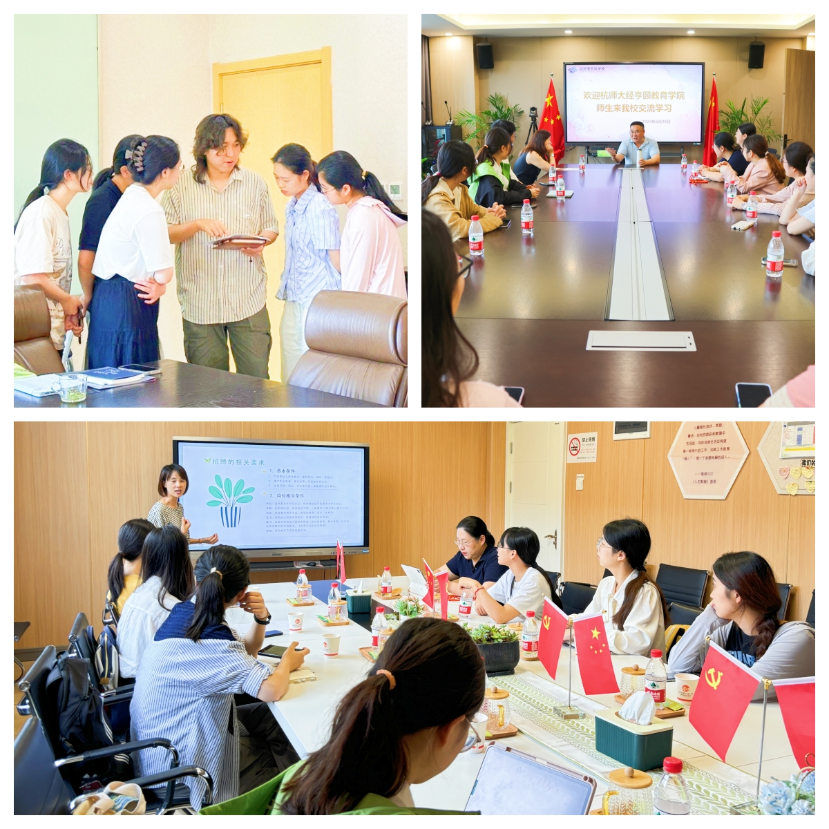 团队还与用人单位开展了深入的交流。程骁首先阐述了此次开展实地走访调研活动的背景和意义,同时介绍了2025届毕业生的生源情况。出席座谈会的用人单位领导,首先高度肯定天英足球即时比分 毕业生的专业素养和综合能力,同时非常欢迎更多优秀的师大学子加入到教师行列,其次对天英足球即时比分 组织的暑期走访活动表示赞赏,最后双方以拓展学生就业市场为牵引,就人才培养、实习实训等方面进行了交流和探讨,并达成深化合作共识。即通过整合现有人才资源,形成畅通的人才供需渠道,一是持续开展人才培养合作,加强双方联动;二是进一步加强学生就业实习基地建设,全面深化供需对接,探索协同育人新模式。