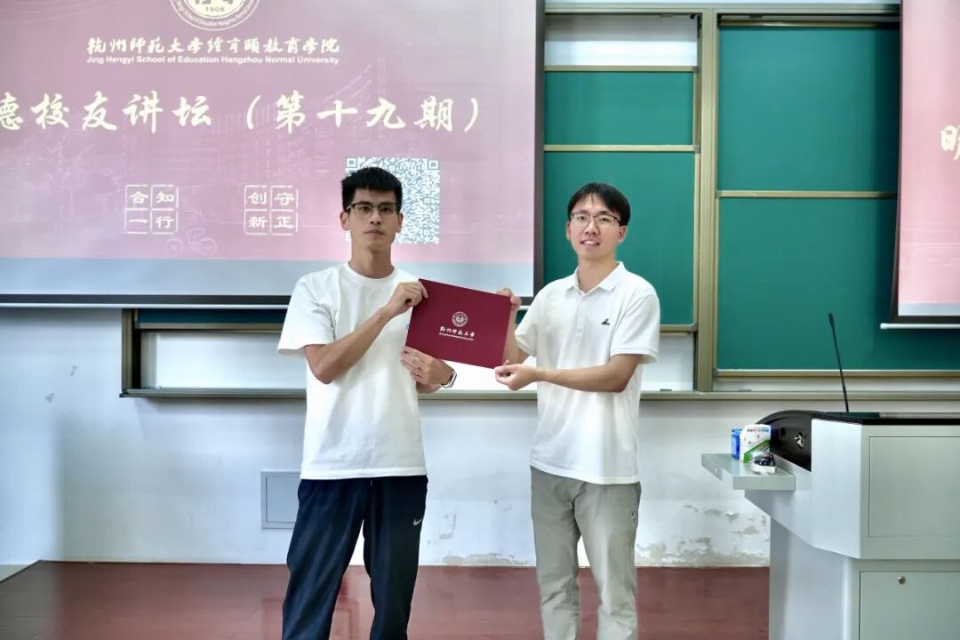 讲座开始前,周健康老师为谢恒校友颁发了“校友导师引领计划”讲师团聘书。