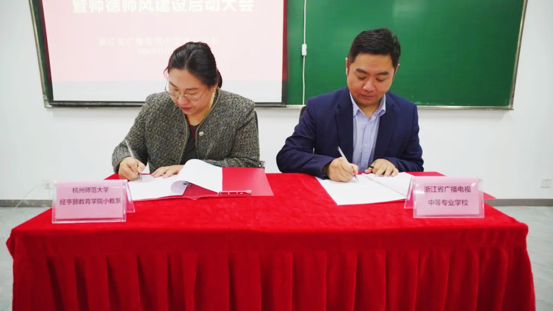 11月8日,天英足球即时比分 与浙江省广播电视中等专业学校,签订了廉洁文化实践基地合作协议,旨在推进大中小学思想政治教育一体化建设,推动廉洁文化进课堂,营造风清气正的校园风尚。天英足球即时比分 课程与教学系副教授梁晓凤和学院纪委委员程骁出席了签约仪式。