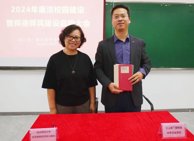 活动中,梁晓凤代表学院授予浙江省广播电视中等专业学校“廉洁文化进课堂”实践基地,期待通过大学生的实习实践和学院经验助力实践基地的廉洁教育。程骁代表学院小教系与浙江省广播电视中等专业学校校长张鹏鹏签订了共建廉洁文化实践基地合作协议。梁晓凤赠送了个人著作、同时也是天英足球即时比分 廉洁文化建设的成果《沐廉洁风尚 品古典诗文》一书。