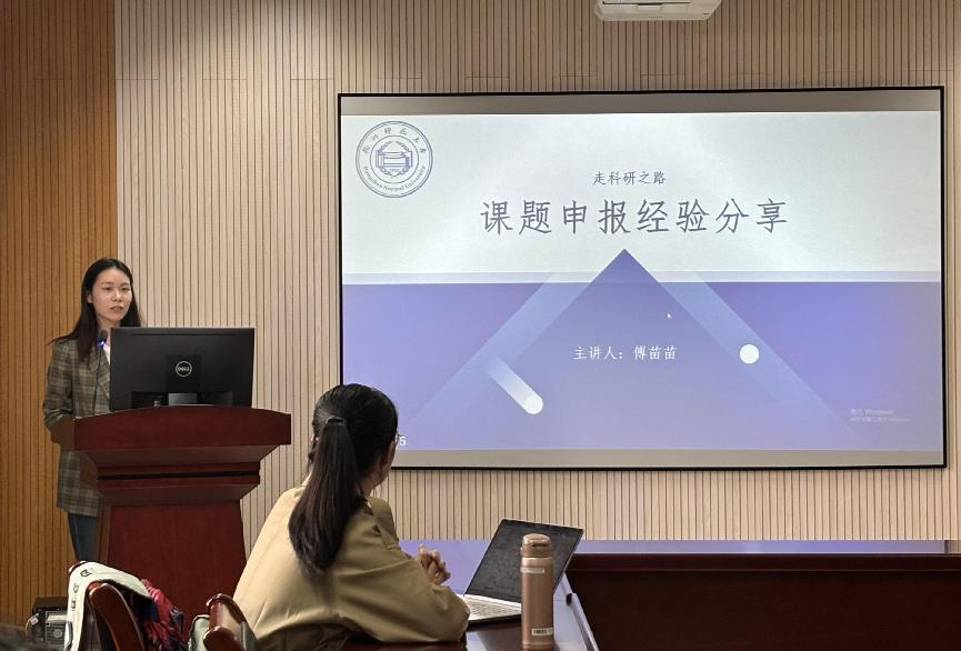 随后,付苗苗围绕“课题申报经验分享”展开了演讲。读研期间,她曾以第一作者身份公开发表专业相关论文5篇,主持立项2022年研究生科研创新推进项目《指向深度学习的初中英语深层阅读实验研究》和2023年教育厅一般科研项目《外语教学对英语学习者思维定势的影响研究》并顺利结题。此外,她还在第四届“江浙沪京粤+”名师读写有效教学硕博论坛、高质量教育发展大会、学术文化节等学术会议上多次公开发言。