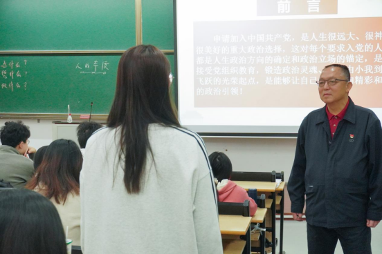 随后,施老师鼓励发展对象严格践行入党标准。共产党员作为中国工人阶级的先锋战士,应勇于与落后现象作斗争,全心全意为人民服务,不惜牺牲个人一切,始终保持清正廉洁,与劳动人民紧密相连。施老师还通过韦思浩、李桓英的感人事例,详细阐述了入党方法论,引导发展对象把握三个前提、筑牢四个基础、聚焦五个关键。