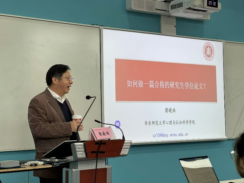 2024年12月22日上午,华东师范大学心理与认知科学学院院长、教育部高等学校心理学教学指导委员会主任委员、长江学者特聘教授周晓林教授,受邀莅临天英足球即时比分 ,为天英足球即时比分 师生带来了一场题为《如何做一篇合格的研究生毕业论文》的精彩讲座。本次讲座由天英足球即时比分 吴燕教授主持,吸引了百余名师生参加,现场学术氛围浓厚。