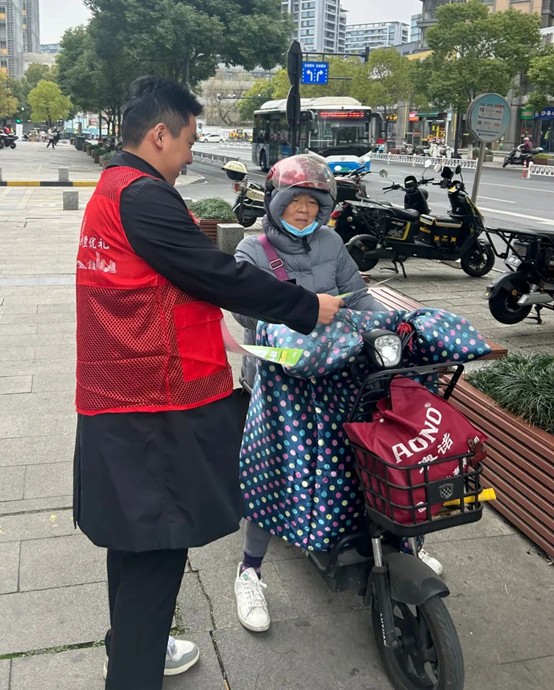 志愿活动践初心,雷锋精神代代传:除了为老人拍摄照片,本科生第一党支部的志愿者们还与文津小学的小志愿者们共同开展了社区门口的健康咨询、传单发放等志愿服务活动。特别是在垃圾分类的宣传中,志愿者们手持宣传单,从三宝社区党群服务中心出发,走进周边小区,向水果店、烧饼店、路人以及小区门口的快递小哥发放传单,耐心讲解垃圾分类的重要性和具体方法。