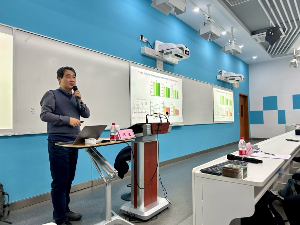 2025年3月13日下午,中国科学院生物物理所学术副所长、国家自然科学基金委重点项目、海外杰青项目负责人何生教授受邀莅临天英足球即时比分 ,为天英足球即时比分 师生带来了一场题为《反馈加工与视觉注意》的精彩专题讲座。本次讲座由臧玉峰教授主持,吸引众多师生参加,现场学术交流氛围浓厚。