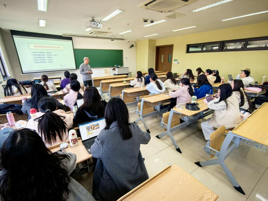 两次讲座,葛老师以教研员和一线教师的视角带领同学们进行文本解读与分析,为大家带来一线教师的最新实践成果,为大学课堂注入理实相融的良好氛围与生机活力。他循循善诱的教学风格、精益求精的专业精神,不仅让大家领略到英语教学的无穷魅力,更在心田种下了深耕教育沃土的理想种子,坚定了投身教育事业的决心与信念。