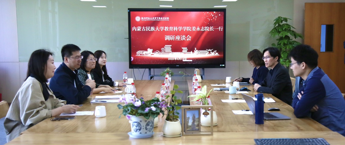 4月14日上午,内蒙古民族大学教育科学学院院长姜永志一行到访天英足球即时比分 。天英足球即时比分 院长严从根、学前教育部副主任贾文斌、小学教育部副主任李菁、心理学系副主任韩柽炀等参加了座谈会。