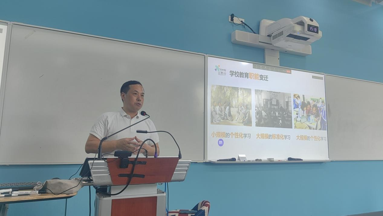 何海银老师梳理了学校教育职能的变迁脉络,指出教育正从“小规模个性化学习”“大规模标准化学习”迈向“大规模个性化学习”阶段。他援引多元智能理论之父加德纳的观点,强调未来人才需具备“解决复杂问题、创造有趣作品、提出优质问题、同伴协作”四大关键能力,同时结合《关于深化教育体制改革的意见》,指出认知、合作、创新、职业能力培养的重要性,勾勒出“全人教育”的培养蓝图,引发了听众对新时代育人目标的深入思考。