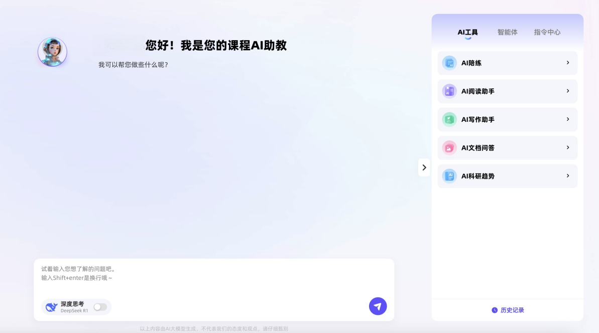 AI课程在以上教学应用场景外,配备智能体、指令中心、AI模型训练等功能,提供个性化、多元化教学场景及沉浸式学习体验,全方位提升教学效率和学习体验,推动智慧课程建设的高效发展。