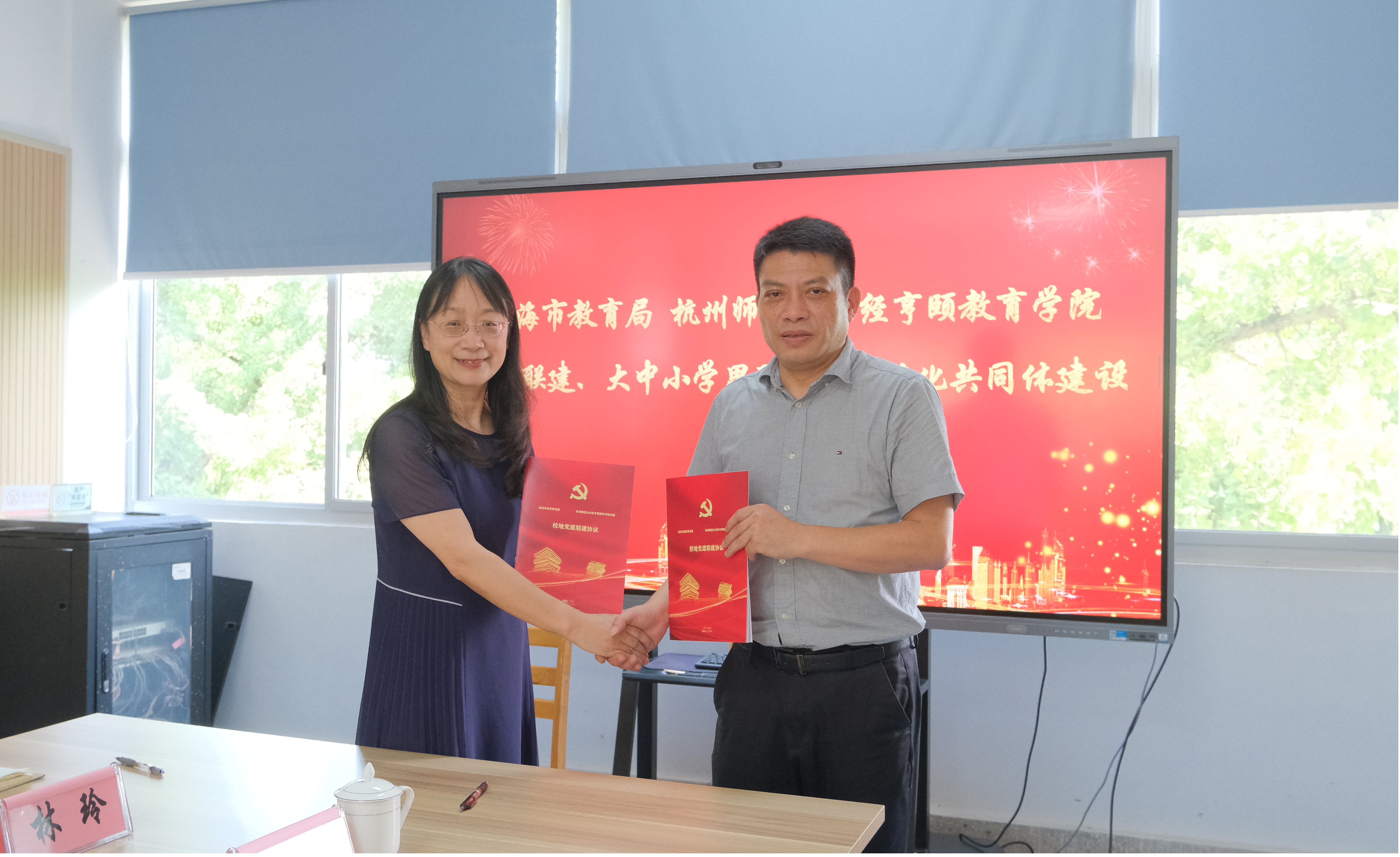 下午,学院党委一行赶赴临海市,与临海市教育局开展了党建联建、大中小学思政教育一体化共同体建设活动。临海市教育局党委委员王卫兴介绍了临海市教育情况,围绕“书香党建、清风校园”党建总品牌,积极打造“学在临海”。学院党委与临海市教育局党委签订了党建联建协议、推进大中小学思政教育一体化协作共建协议,通过共筑组织基础、共促队伍建设、共解群众急难、共办实事好事、共建联动机制,实现双向互动、资源共享、优势互补。