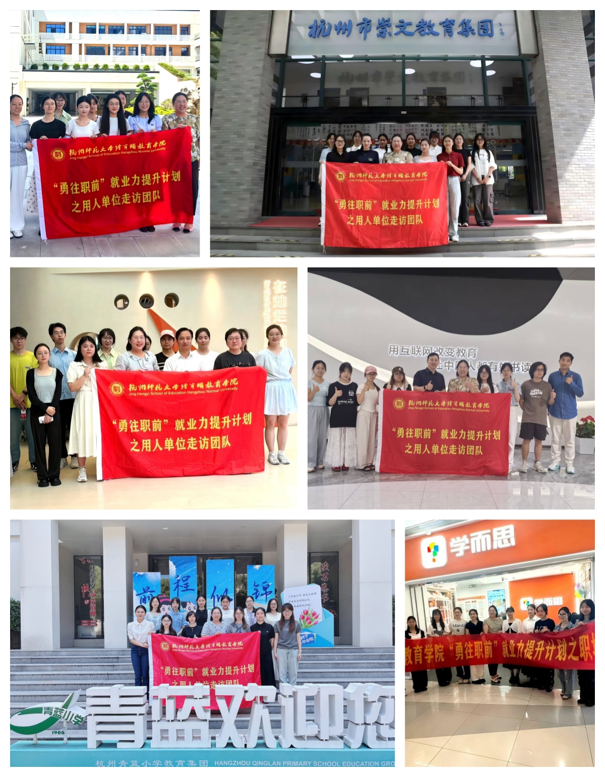 作为天英足球即时比分 “勇往职前”就业力提升计划的品牌活动,用人单位暑期走访今年已进入第二年。继2024年暑期首办即获学生与用人单位一致好评后,6月27日至7月3日,学院老师再次带领实践团队,先后走访学而思、铭师堂等教育机构及崇文小学、五常小学、临平实验小学、紫金港小学、钱塘新区文海第二实验学校、青兰小学等多所知名小学,通过实地调研持续深化校企联动,为2026届毕业生职业发展铺路搭桥。