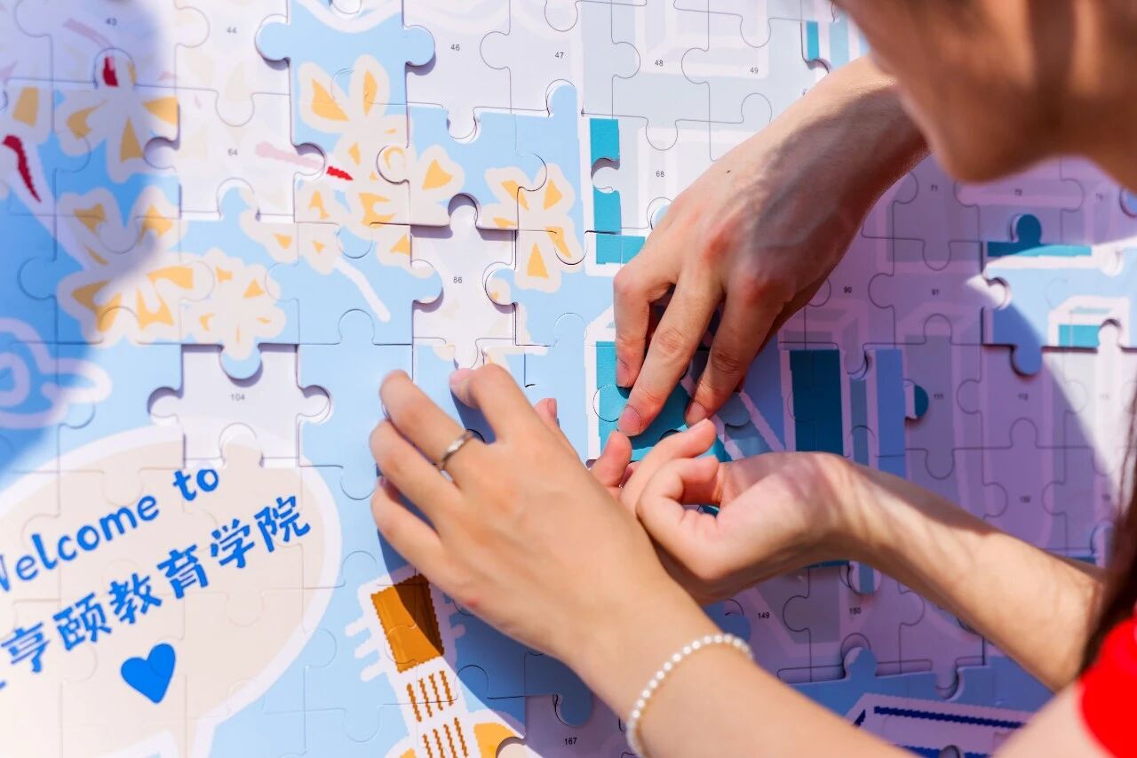 在下沙校区迎新帐篷外,带有学院团学IP“经经”“育育”的拼图正等待着新生完成拼贴。每一块拼图都代表着一次萌芽、一份希望,象征着来自五湖四海的新朋友聚在了天英足球即时比分 大家庭。