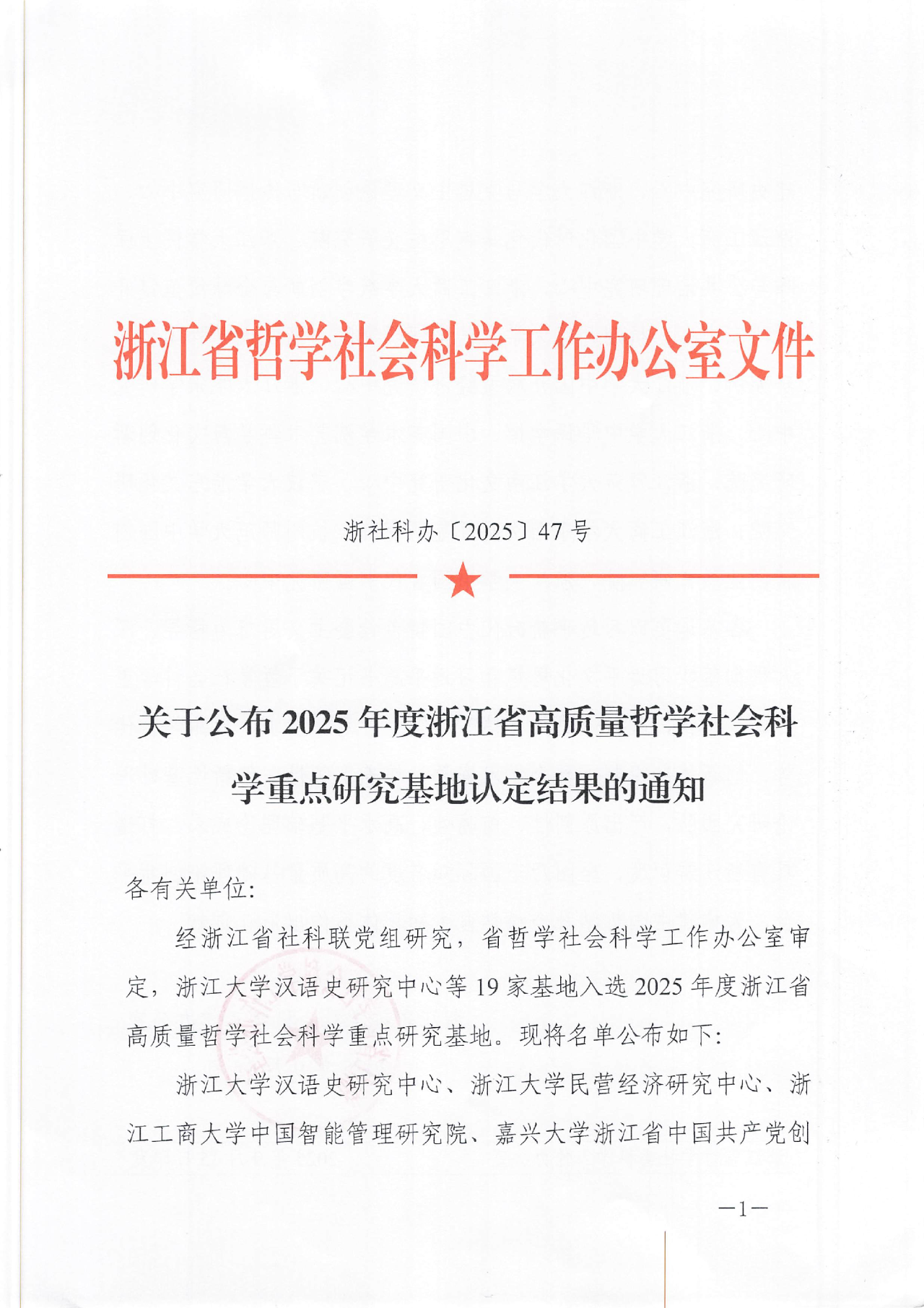 近日,浙江省哲学社会科学工作办公室公布了2025年度浙江省高质量哲学社会科学重点研究基地认定结果,杭州师范大学中国创新创业教育研究院成功入选。
