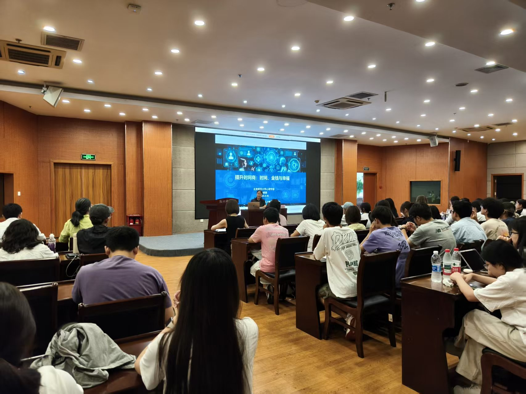 整场讲座内容详实、案例生动,不仅深刻揭示了时间、金钱与幸福感之间的内在联系,也为听众提供了科学有效的时间管理方法与生活规划指导,受到师生一致好评。