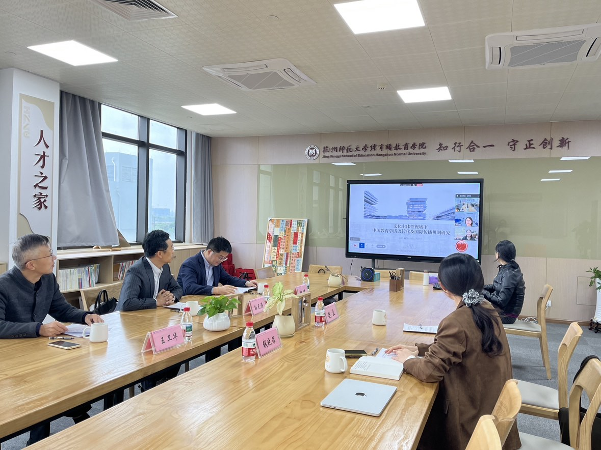 赵伟黎教授主持的课题为《文化主体性视域下中国教育学话语转化及国际传播机制研究》(课题编号:BAA250043)。赵伟黎教授分别从研究背景、研究问题、研究框架、预期成果重要性及可行性、研究计划五大方面阐述了课题主要内容。课题基于文化主体性视域,引入话语研究视角,从语言本体、话语情境和认识论维度,探究中国教育学话语“传统—现代—全球”一体化转化及国际传播机制,建构“文化传统溯源、现代创新转化、国际传播适配、传播反哺转化”的双向循环模型。研究将以“天人合一”传统智慧与马克思主义生态观的融合为案例之一,探究中国“生态文明”话语的生成、转化及传播机制,为全球可持续发展教育提供中国方案,提升中华教育文明的全球治理能力。专家组对课题的价值和科学性给予了高度肯定,并提出了课题需进一步明确研究针对性、聚焦核心“转化与传播机制”等宝贵建议。