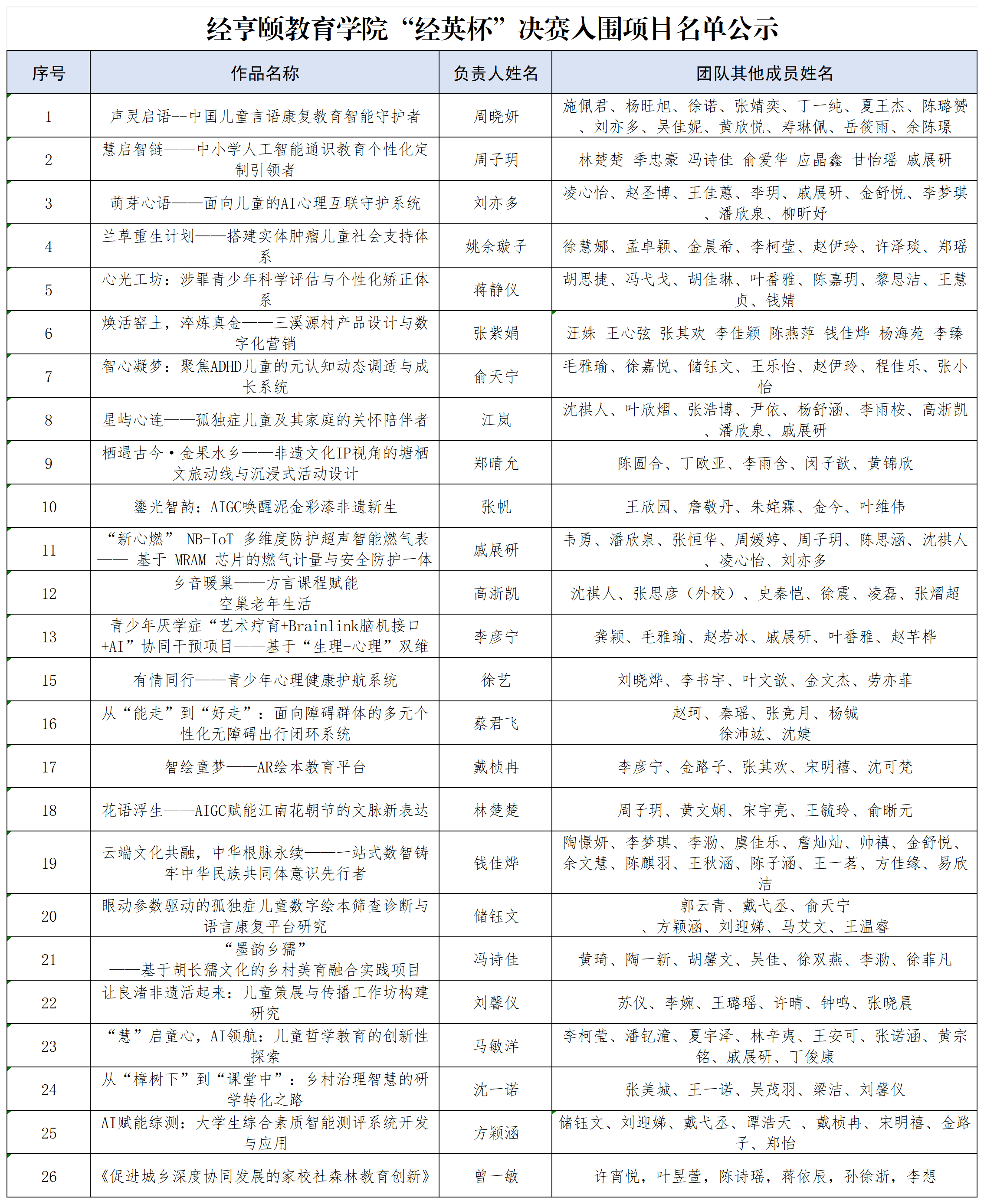 经前期申报天英足球即时比分 2025年“经英杯”暨“创新大赛”“挑战杯(希望杯)”竞赛共收到44件作品,经专家评审、学院汇总,最终选出25件作品入围学院决赛,现将入围名单公布如下。