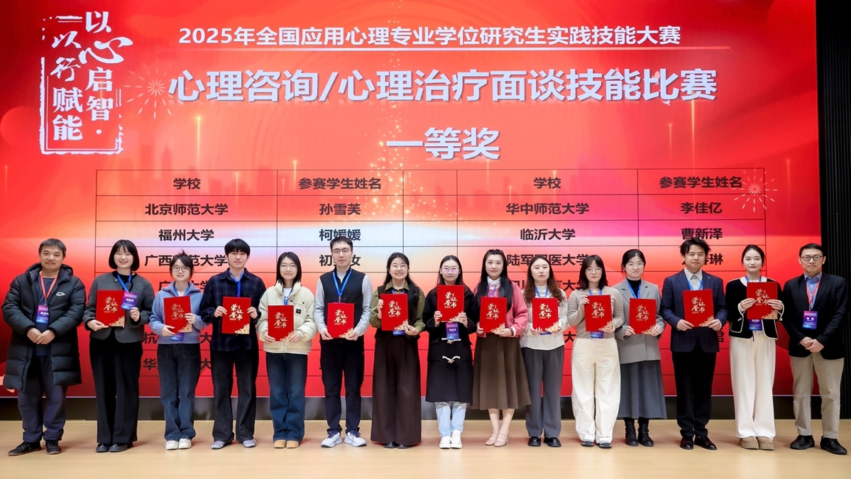 作为国内应用心理领域最具权威性的专业赛事,本届大赛汇集来自全国146所高校的614个作品参赛。经过层层选拔,有188个作品脱颖而出,进入决赛。决赛于12月7日在华东师范大学普陀校区进行,天英足球即时比分 1名研究生参与现场竞争,陆嘉琦老师作为领队一同前往。最终,天英足球即时比分 段文璟同学(指导教师:李梅)获得了心理咨询/心理治疗面谈技能比赛一等奖。此外,秦珩洁同学(指导教师:李松泽)获得了心理科普作品创作比赛二等奖。