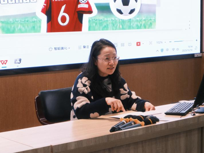 第一节示范课为吴思玥老师执教的三年级上册 Unit6 A Letters and sounds 语音课。课堂伊始,吴老师以字母歌热身,借助教材配套 chant 自然导入,系统传授 “v、w、x、y、z” 五个字母的发音规则。板书环节中,她创新性地运用“小刘海”“大刘海”等形象化表述,清晰阐释字母书写要点,助力学生快速记忆;随后组织学生在作业纸上自主书写并开展自我评价,充分凸显学生的主体地位。课程亮点在于吴老师结合教材经典人物“zip”和“zoom” 创编绘本,将字母、单词与句子融入完整故事语境,极大提升了学习趣味性。同时,她紧扣单元主题情景图,创设“动物学校足球节”的教学背景,课件中的 quiz 环节均围绕 “足球” 主题设计,使学生在猜对答案的过程中直观感知“win”一词的语义;即便在“猜测六号盒子礼物” 的互动环节,也通过“it’s round;you can play”等提示引导学生进行有意义猜测,始终注重语篇的整体性与连贯性,确保每个句子相互关联、形成完整语义链。课程尾声,吴老师利用作业本资源改编 chant,有效巩固了当日所学知识。